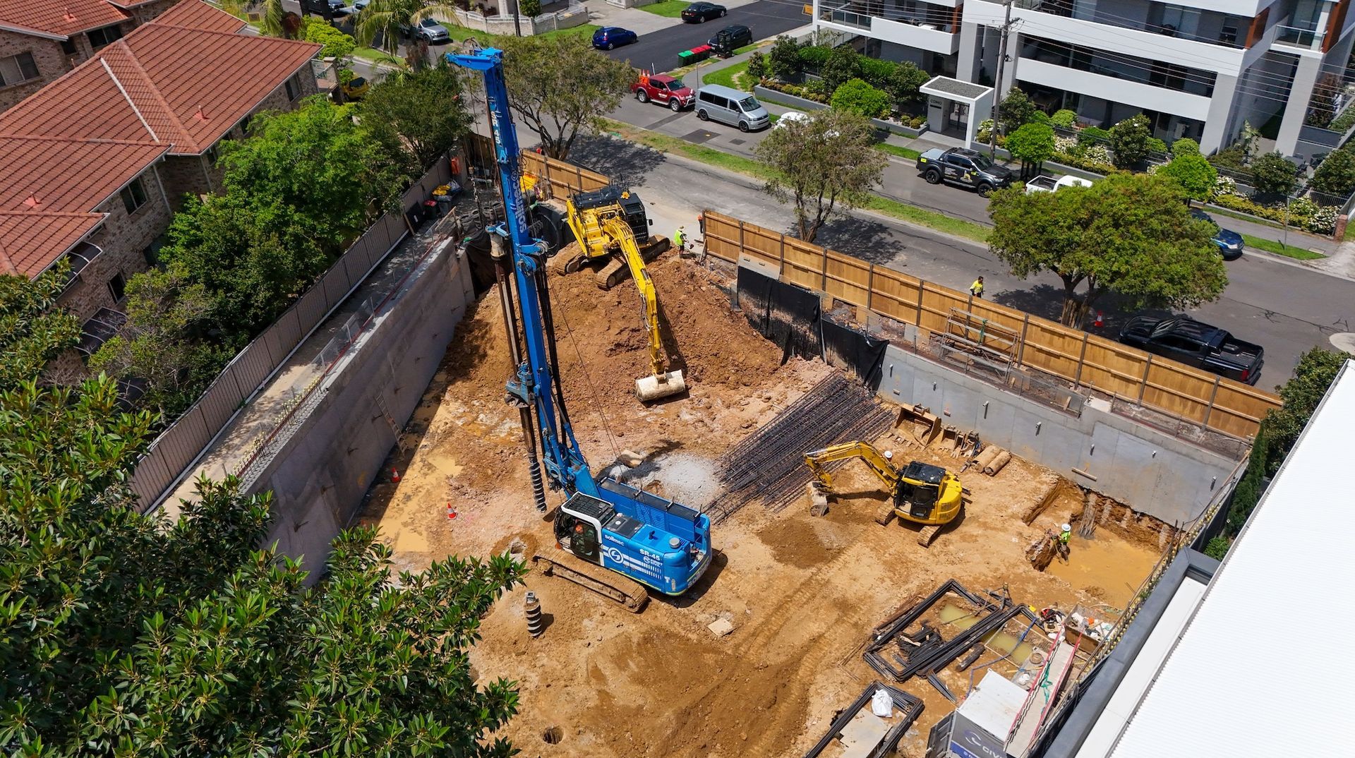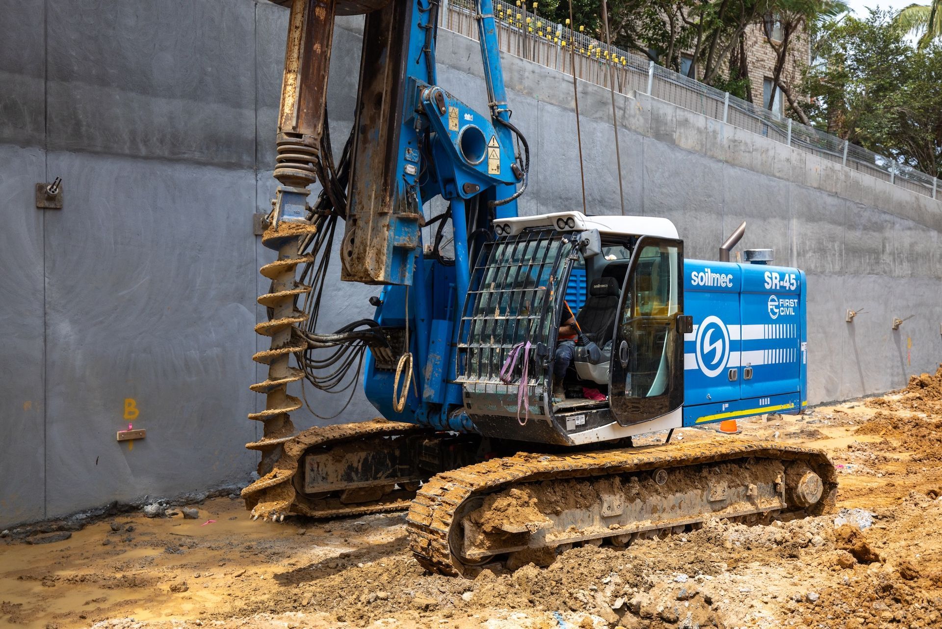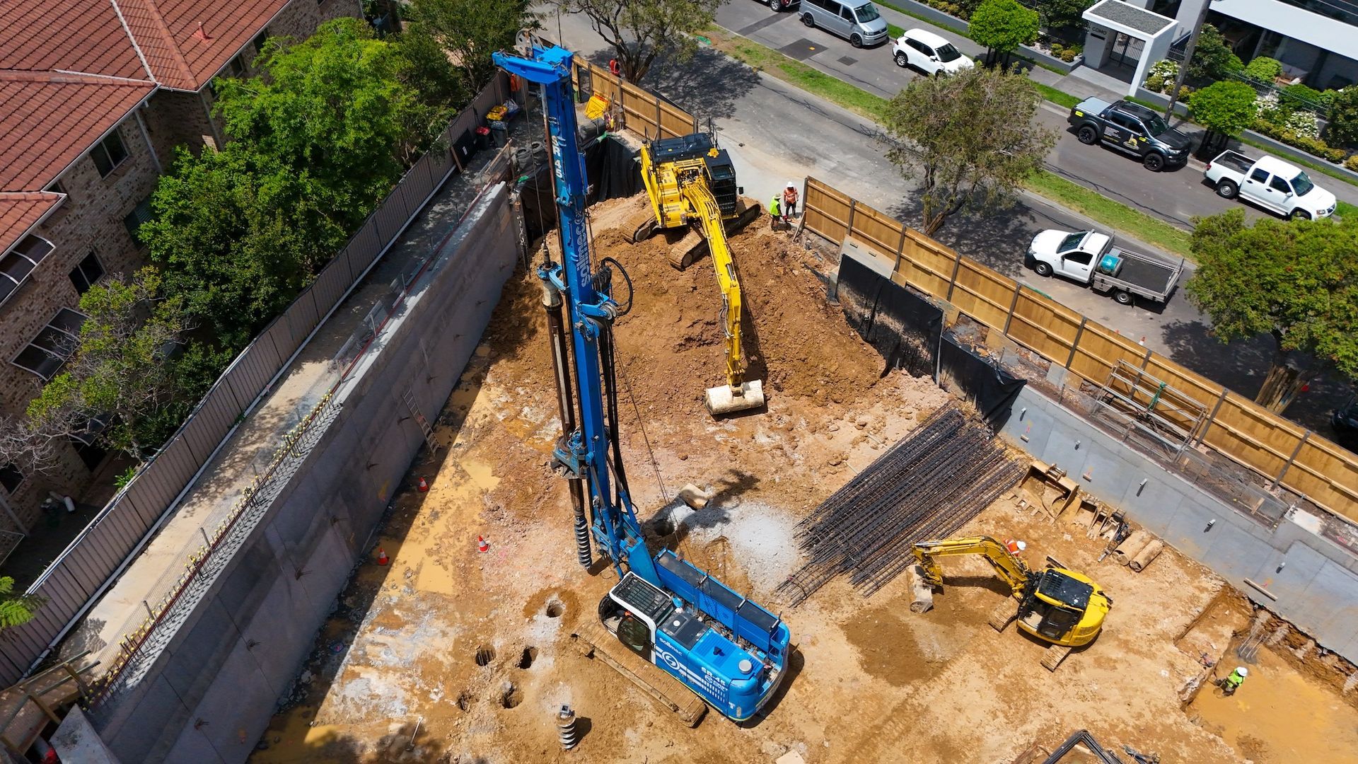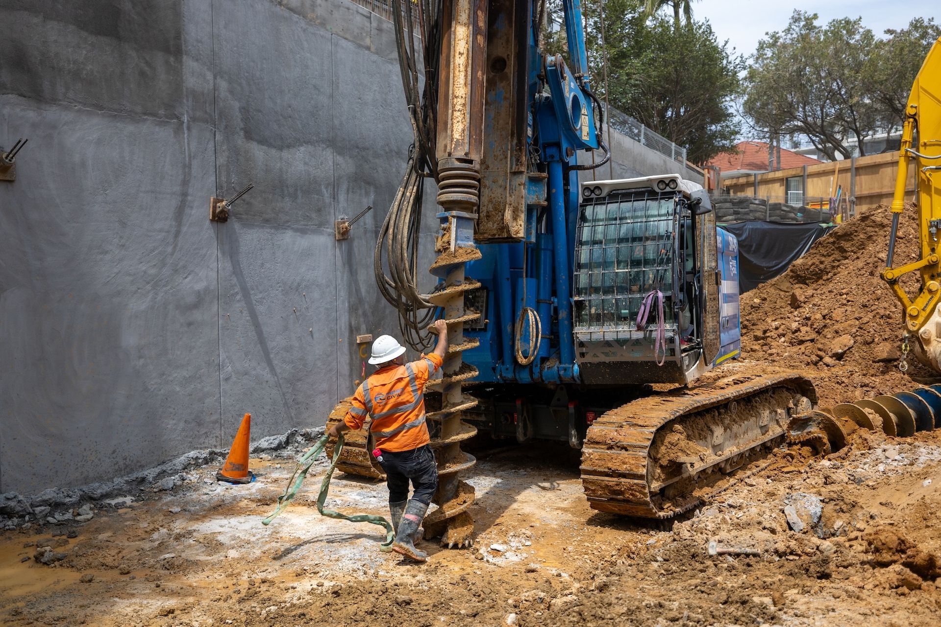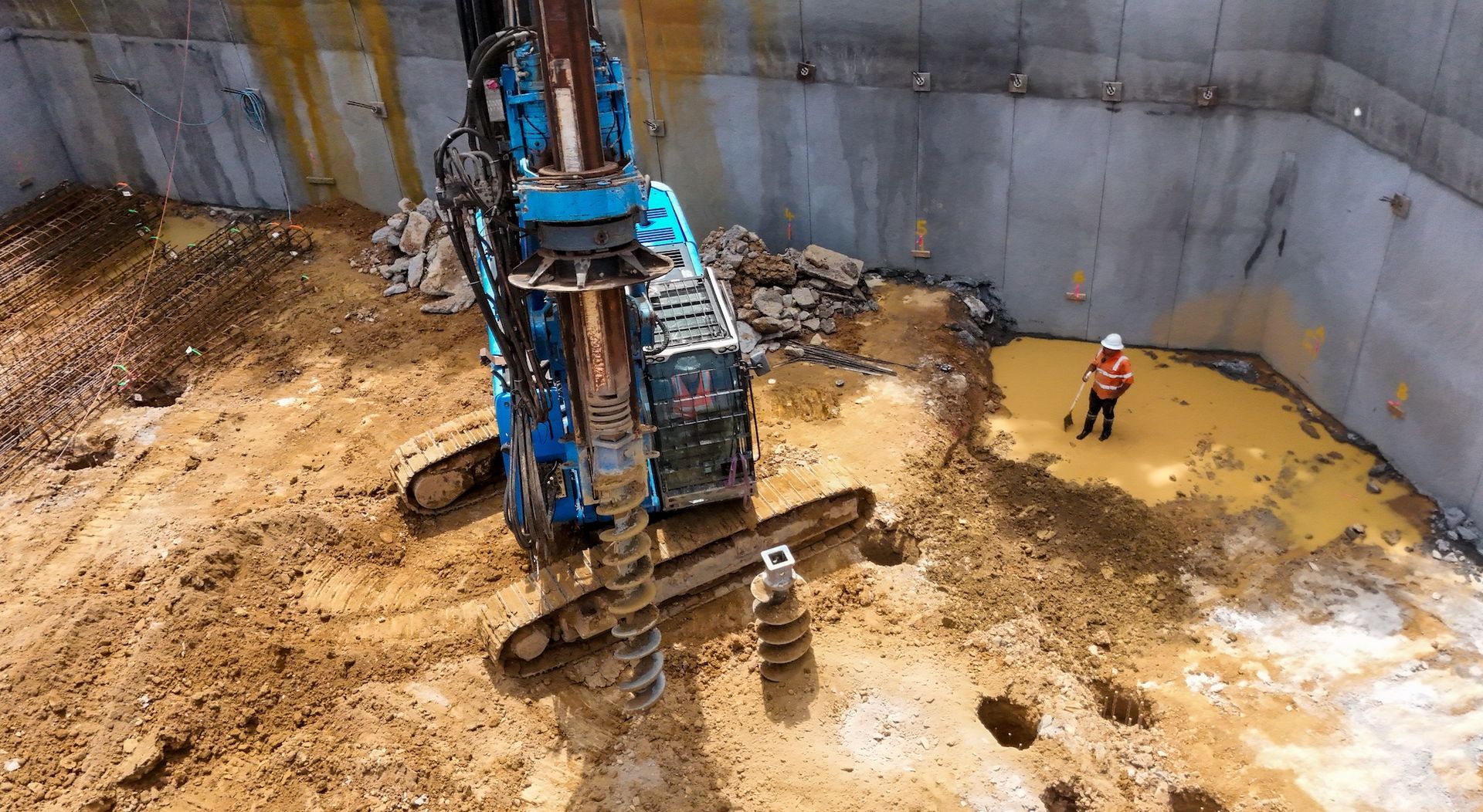 - Construction of shoring piles including reinforcement and concrete