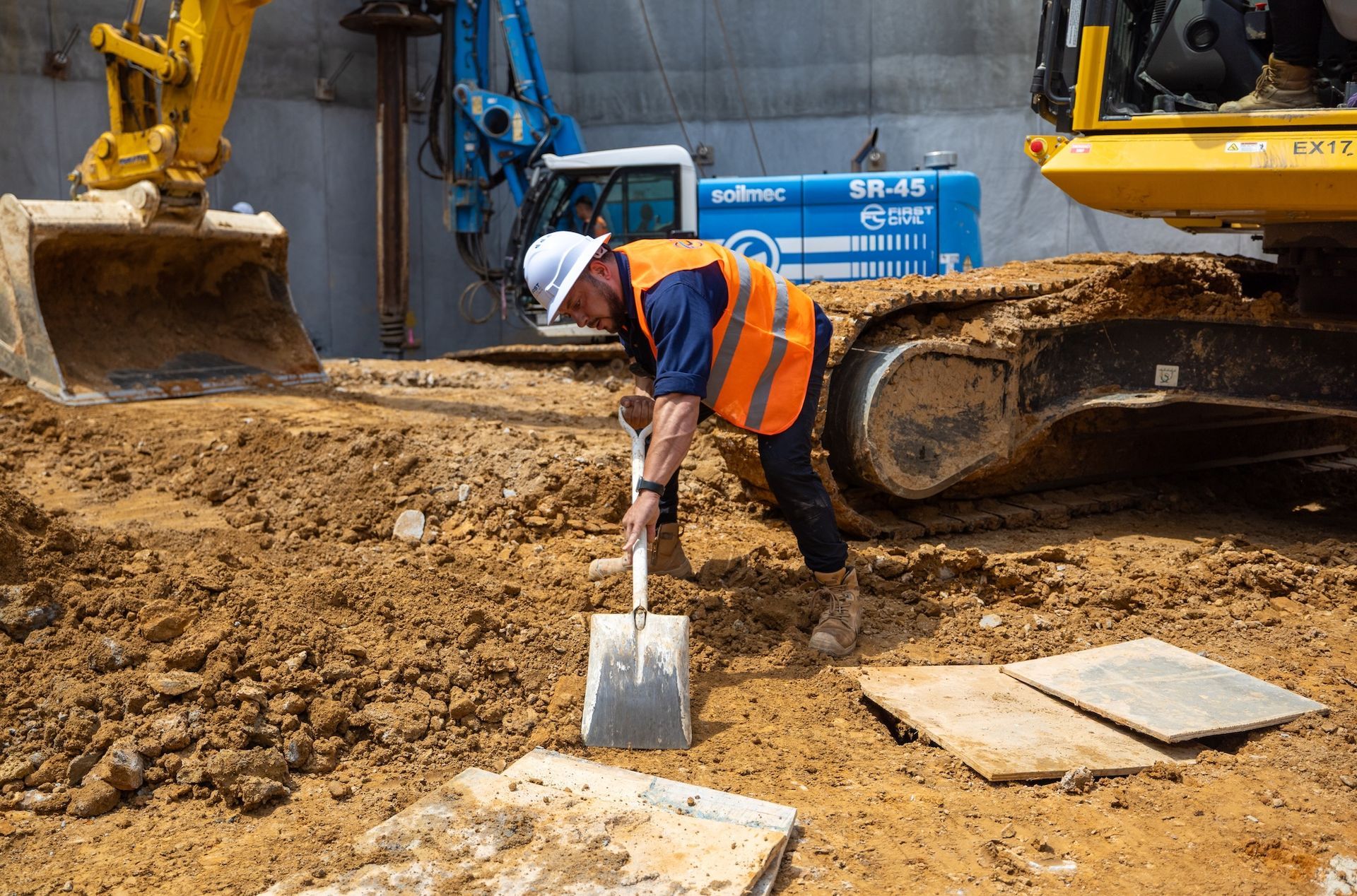 - Detail excavation for pile caps, footings, lift pits, stair base and pump-out tank