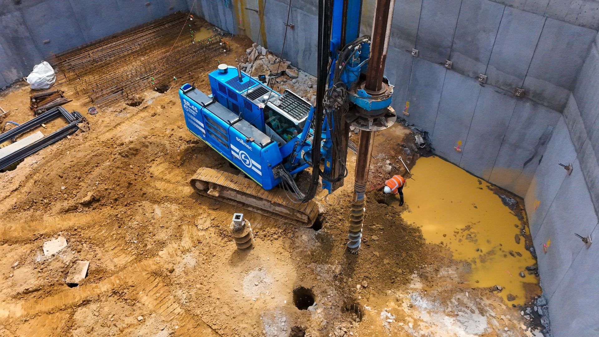 - Construction of foundation piles for building structure and crane base